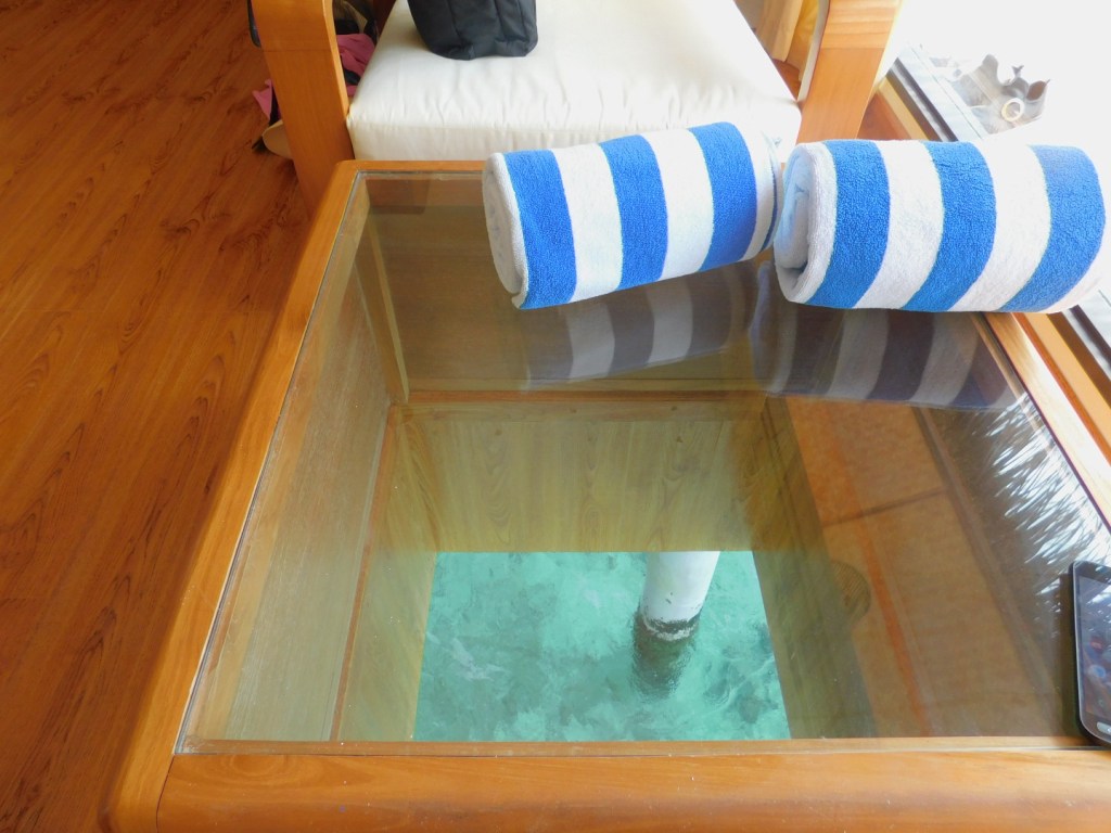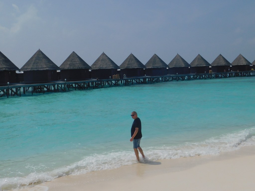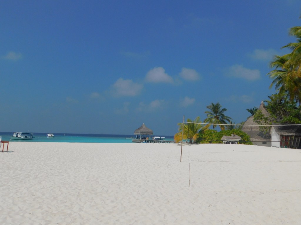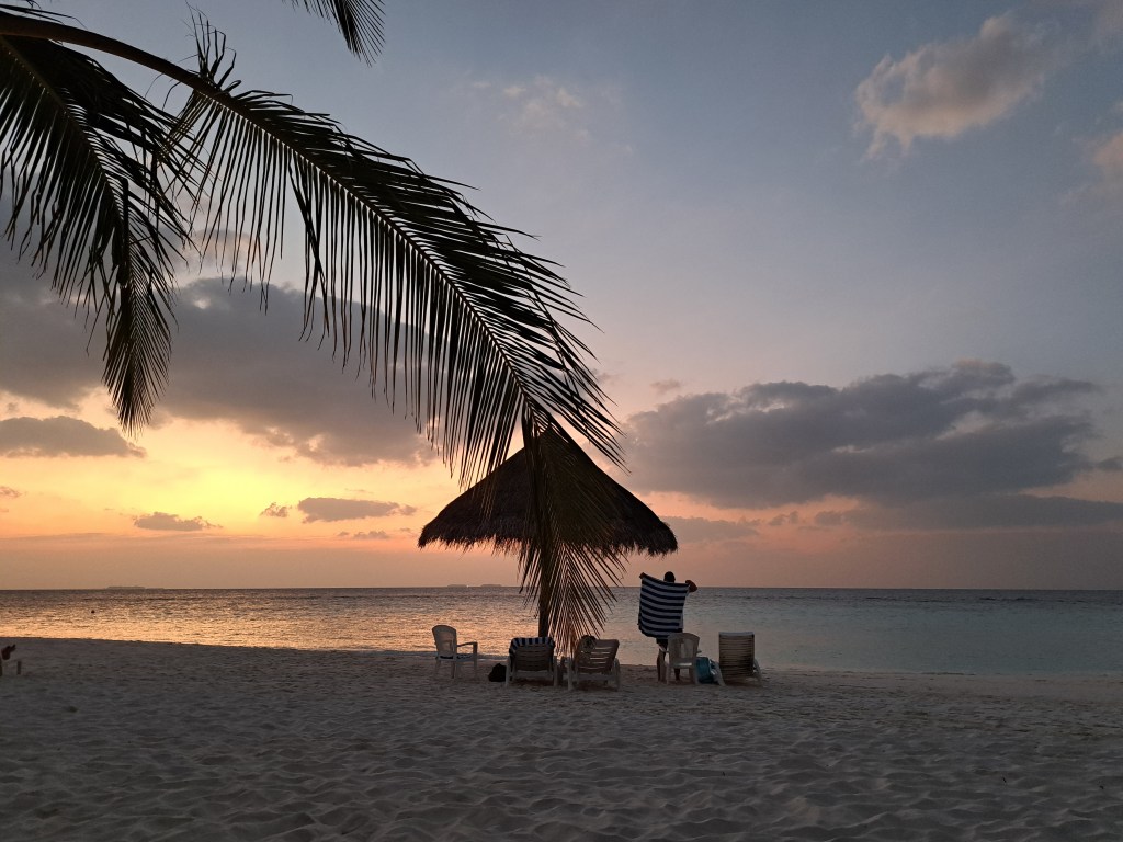 Thulhagiri: + Barfußinsel(im Restaurant, den Bars überall Sand)“only Adult“, viele Frischverliebte und Fischverheiratete aller Nationalitäten, immer nur einen Steinwurf von Essen und Trinken entfernt – InfluenzerHotspot (hat heute durch das Possieren am Strand immer wieder für Unterhaltung gesorgt), ansonsten passiert hier wenig.