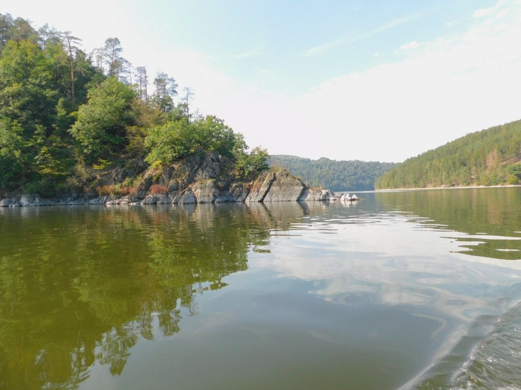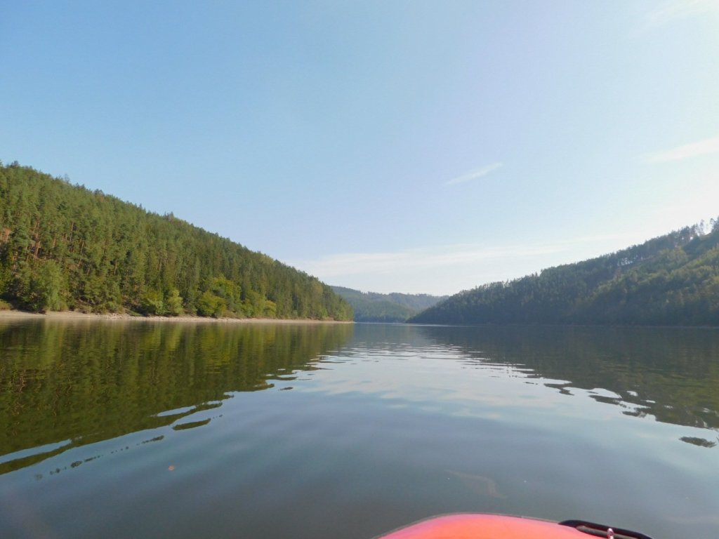 7.00 Uhr Morgennebel zieht die Berge hinab und liegt bleischwer auf dem See, doch kurze Blitzer von hellem Blau lassen schönes Wetter erahnen. Zwei Stunden später pflügt unser Boot sanft schnurrend durch den Stausee. Das Wasser spiegelt den Himmel und rechts und links türmen sich bewaldete Berge auf. In unzähligen Biegungen schlängelt sich der See dahin und vielleicht ist das doch Kanada und nicht Thüringen? sis