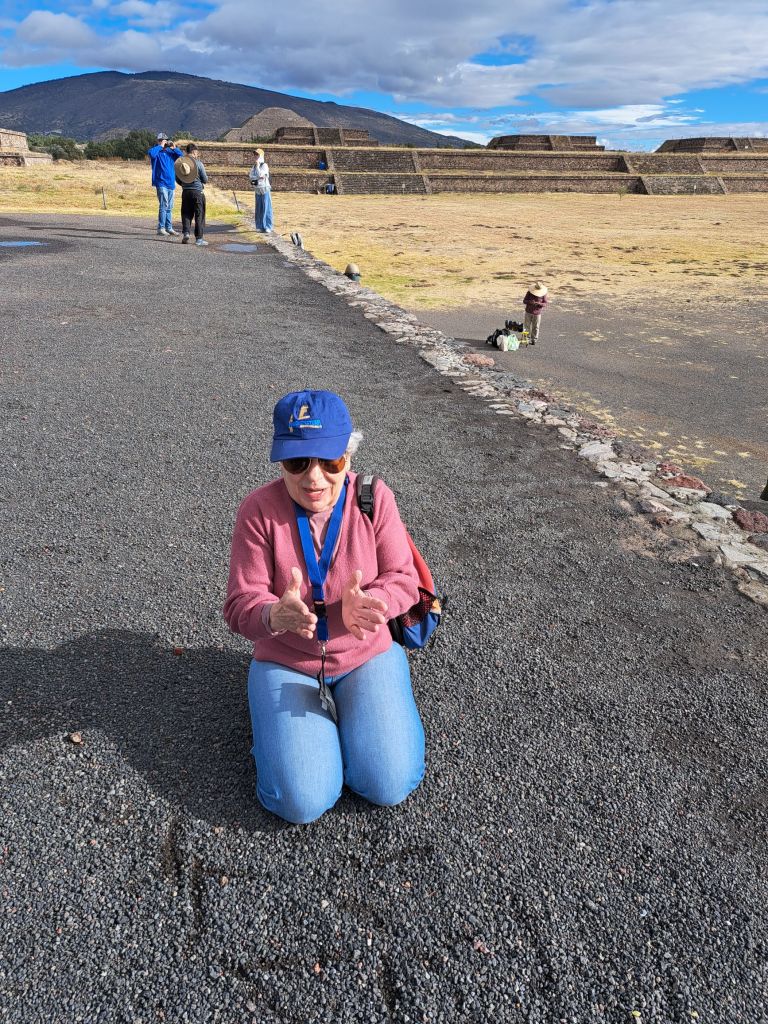 Zu Fuß über die Straße der Toten und zwischen den Tempel läuft man mindestens 1 Stunde ( ohne Evelyns Erklärungen) und so sind wir froh, daß Braulio uns zwischendurch immer mal wieder ein Stück mit dem Auto fährt.