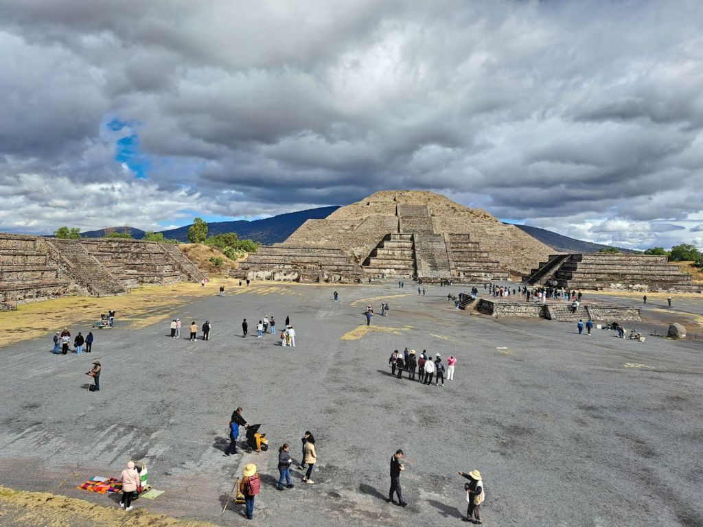 Gut gestärkt tauchen wir ein in die Welt der Ureinwohner Mexikos. Bei uns als Atzteken bekannt, besteht Evelyn auf den Namen Mexicas (Mähschikas). Wir besuchen die größte bewohnte Siedlung Amerikas der Frühzeit mit bis zu 150.000 Einwohnern, Teotihuacan. Gut erhalten ist der Mond und Sonnentempel sowie die Straße der Toten.