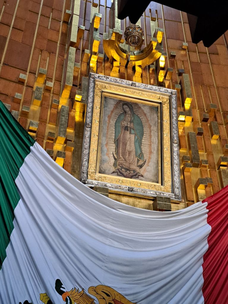 Auf dem Rückweg erinnert uns Braulio ( er hat ja die meiste Zeit entspannt im Auto gewartet) an den Programmpunkt der Heiligen Maria von Guadelupe. Okay, kurz mal reinschauen, willigen wir völlig fertig ein.