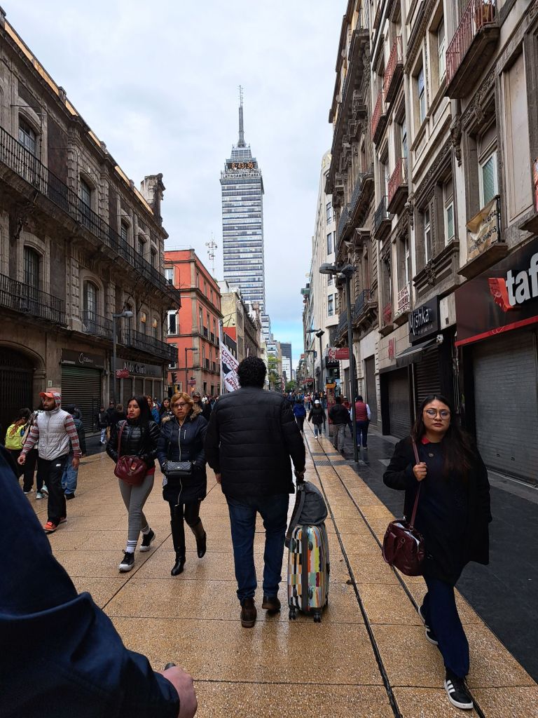 Evelyn hatte uns den Tip gegeben auf den Lateinamerika Turm zu fahren, dort gebe es eine schöne Aussichtsplattform. Ich fand ihn vor 2 Tagen schon sehr schief aber sie meinte, er hat alle beiden großen Erdbeben überstanden und wird nicht umfallen. Das mulmige Gefühl bleibt und als wir die Schlange an der Eintrittskasse sehen, beschließen wir dem mulmigen Gefühl zu folgen und nicht hochzufahren. Stattdessen gibt es noch etwas Leckeres zu essen ( wir freuen uns immer, wenn das bestellte Essen schmeckt, weil keiner Englisch versteht und der Übersetzer nur mit Wifi funktioniert) und dann geht es durch den Menschendschungel zurück ins Hotel und ins Bett, endlich schlafen.