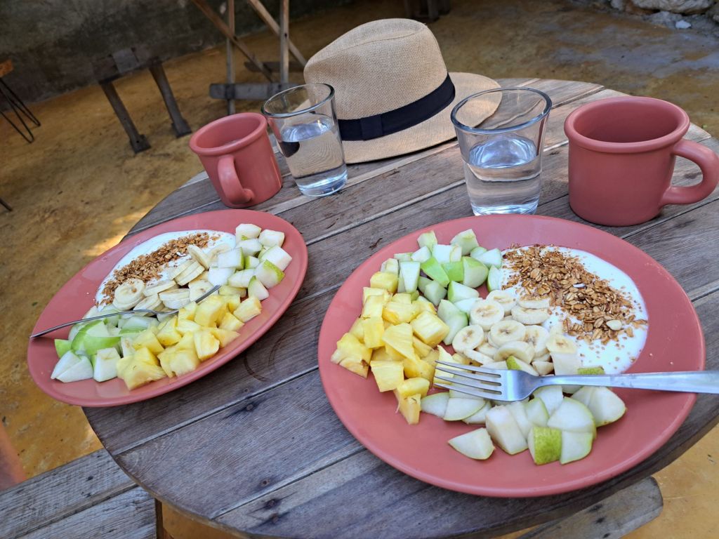 Frühstück ist zum Glück inklusive und so starten wir gesund und lecker in den Tag.