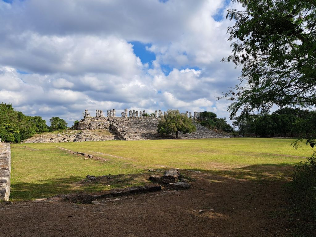 Wir erwachen in der Villa Arquelocica. Der Himmel ist verhangen und der Dunst der aufsteigenden Morgenfeuchte macht alles etwas diesig. Was sich nicht so toll anhört, ist für unsere Besichtigung von Chichen Itza ein großer Vorteil, auch wenn die Bilder der Pyramiden im Sonnenschein besser aussehen.