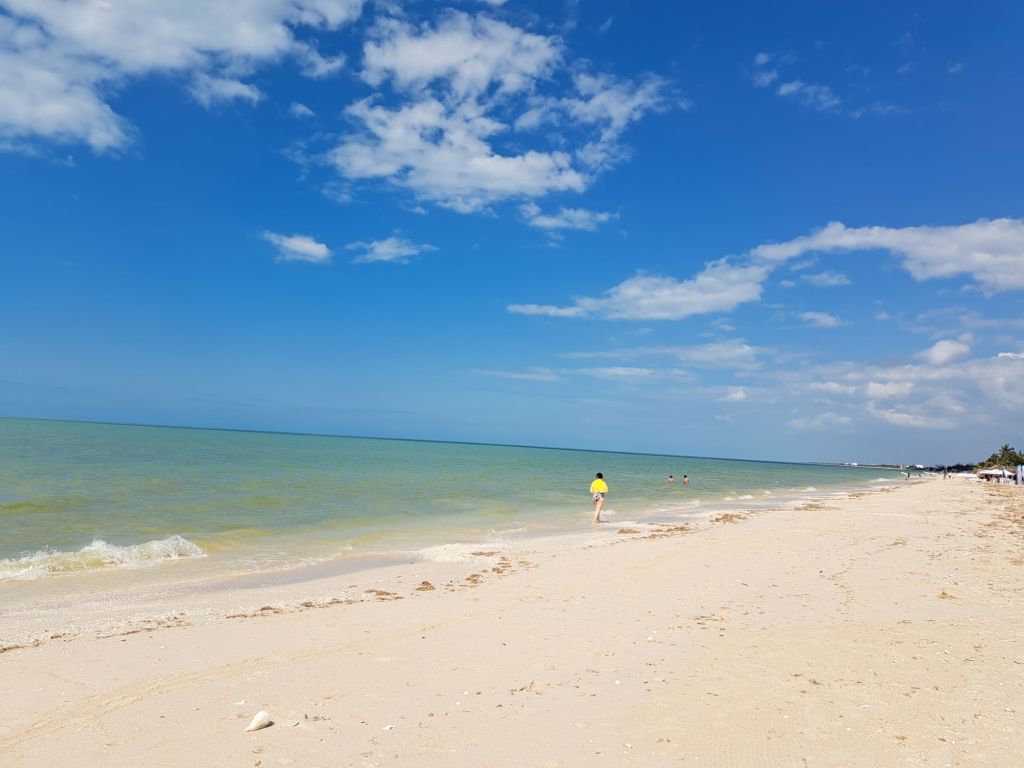 Zur Abkühlung geht es an den Golf von Mexiko. Wir sind jetzt einmal quer über die Halbinsel gefahren von der Karibischen See an den Golf von Mexiko.