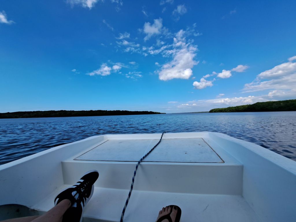 In Celestun, nicht weit vom Meer, gibt es ein großes Naturschutzgebiet. Ein riesiger See mit Mangrovenwäldern rundherum. Wir fahren mit dem Boot auf den See und beobachten Flamingos, Pelikane, Krokodile, Reiher…und und und.