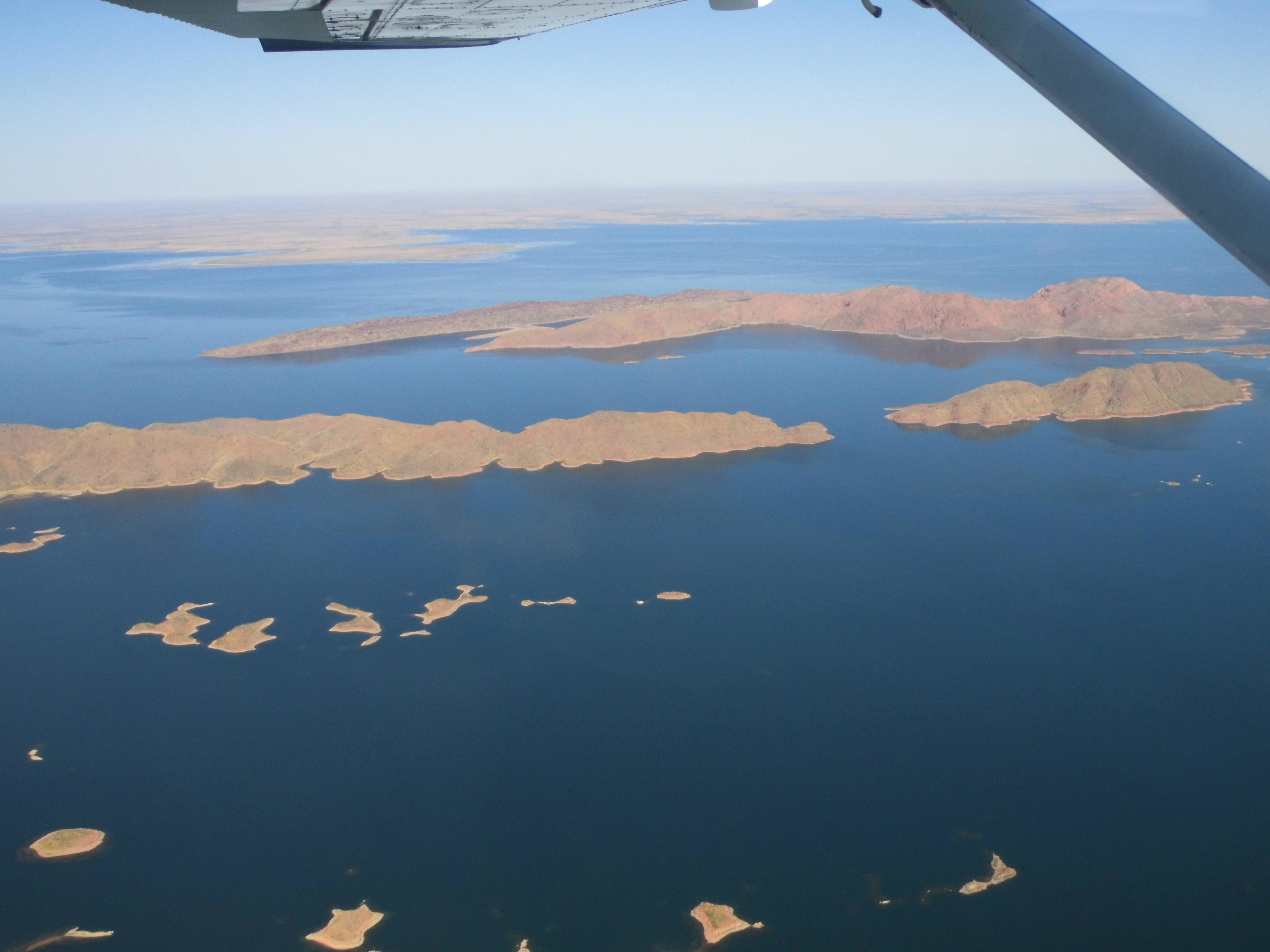 8.09.2015 5.30 geht die Sonne auf und wir stehen mit ihr auf. Gestern mussten wir zum 3. Mal die Uhr umstellen (1 ½ Stunden vor) doch unser Körper lässt sich nicht so leicht umstellen. Ich traue mich bei den ersten Sonnenstrahlen in das erfrischende Nass des Old River. Die Stelle ist als Badestelle ausgezeichnet, aber gestern beim Flug erzählte uns Sam, der Pilot, es gibt jede Menge Freschies (kleinere Frischwasserkrokodile) im Fluss und im Stausee. Nur kurz und nah am Ufer, zum Glück ist das Wasser glasklar, dauert die Erfrischung im Wasser. Der Wasserkessel pfeift schon als ich zurück komme und 7.00 Uhr sitzen wir alle abfahrbereit in den Campern. Heute stehen 650 km auf dem Plan, quer durch Westaustralien, damit wir hoffentlich morgen das Blau des Indischen Ozeans sehen.