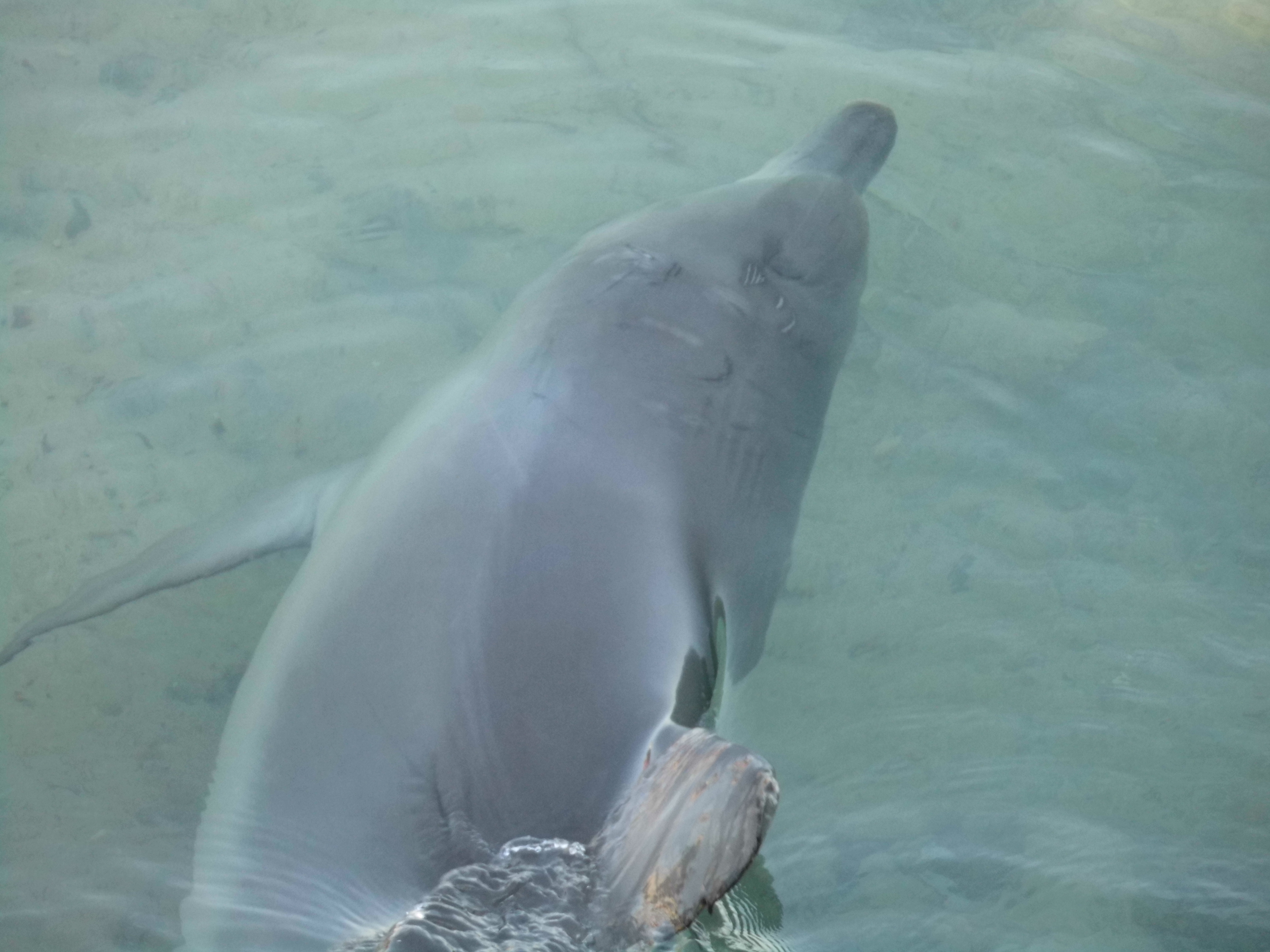 Alle Besucher dürfen mit den Füßen in das Wasser und die Delphine kommen bis auf 1-2 Meter direkt an den Strand. Es gibt für jeden von den Delphinen 3 Fische (aus der Hand von Touristen) und dann ist das Spektakel vorbei und die Delphine weg.