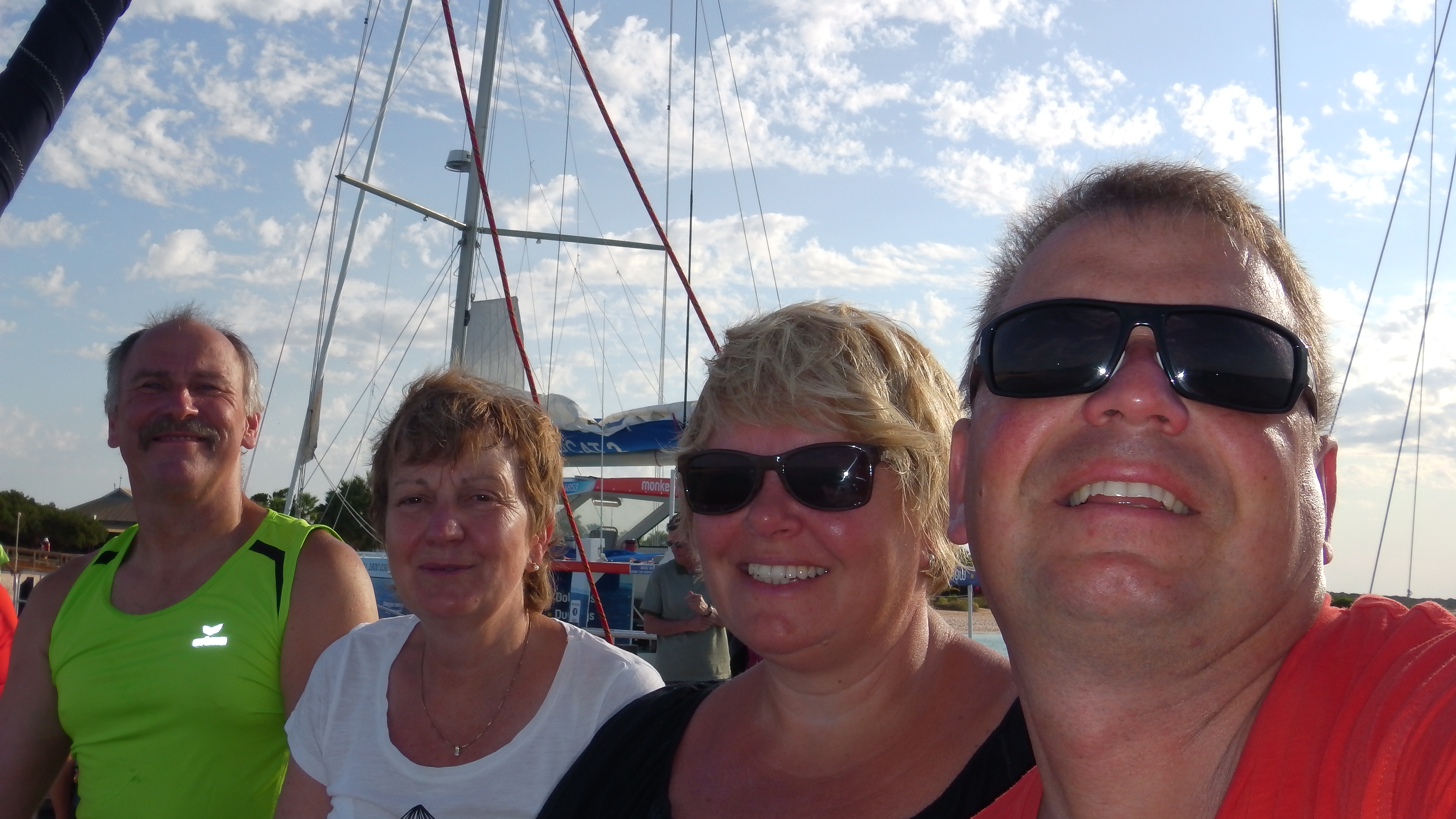 Nach dem Frühstück geht es an den Strand und kurz bevor wir zum Nachmittagskaffee 13.00 in den Camper zurückwollen, passiert es. Die Delphine kommen mit der einsetzenden Flut in die Bucht zurück. Sie machen sich einen Spaß daraus zwischen den Badenden hin und her zu schwimmen und Jörg wir von Zweien eingekreist. Sie schwimmen so nah, das ich ihre kalte glatte Haut an meinem Bein spüren kann und Jörg einen Schreck bekommt, als ihn einer von hinten anstupst. Ich kann es nicht fassen: Gänze-Haut-Moment!!!!