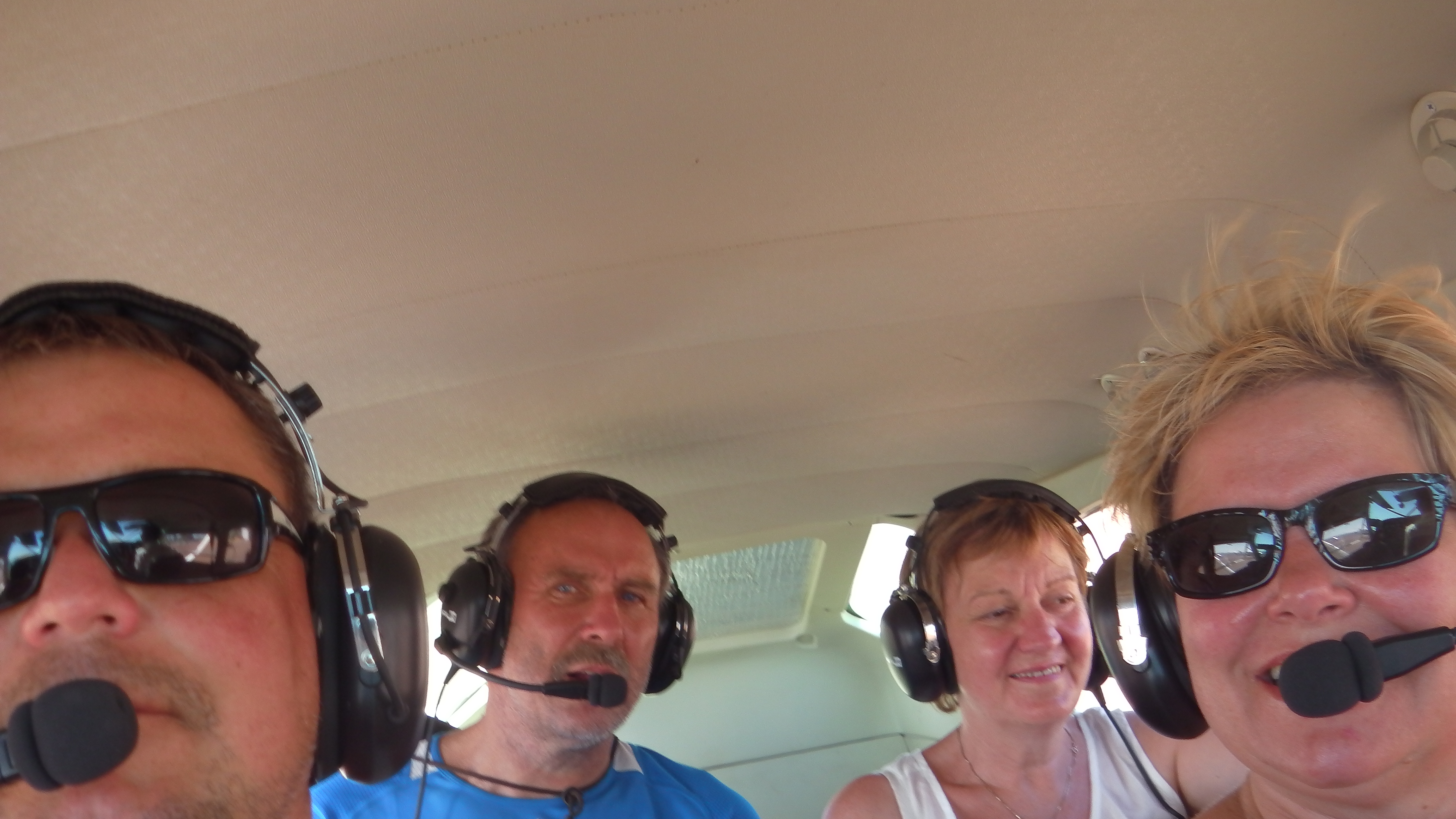 Unser Pilot ist sehr nett (Sam) und das Flugzeug ist klein, sehr klein.