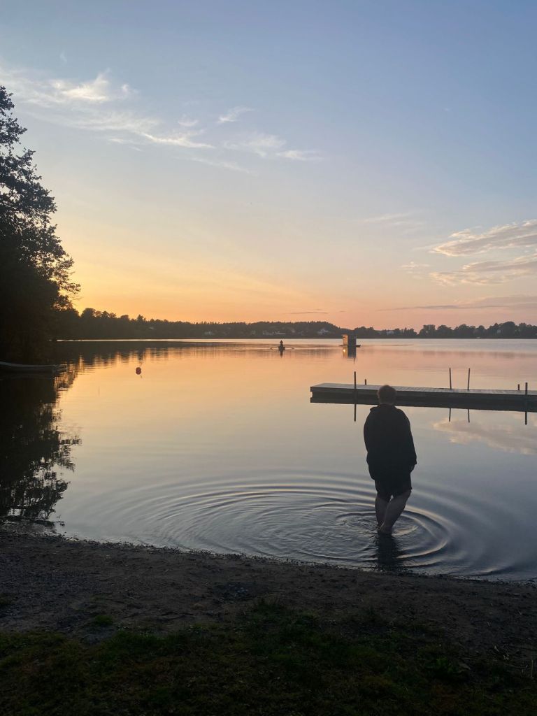 Nach einem Abendessen in der Stadt geht es zurück zum Stellplatz. Wir sind alle platt und freuen uns bei Zitrone und Klaus zu sein. Doch die Sonne steht tief am Horizont und trotz schmerzender Füße will ich den Sonnenuntergang sehen. Ich laufe Richtung Sonne los und nach kurzer Zeit finde ich den perfekten Ort für den heutigen Tagesausklang, einen Badeplatz mit Sonnenuntergang, wie für mich gemacht. Danke Stockholm. sis