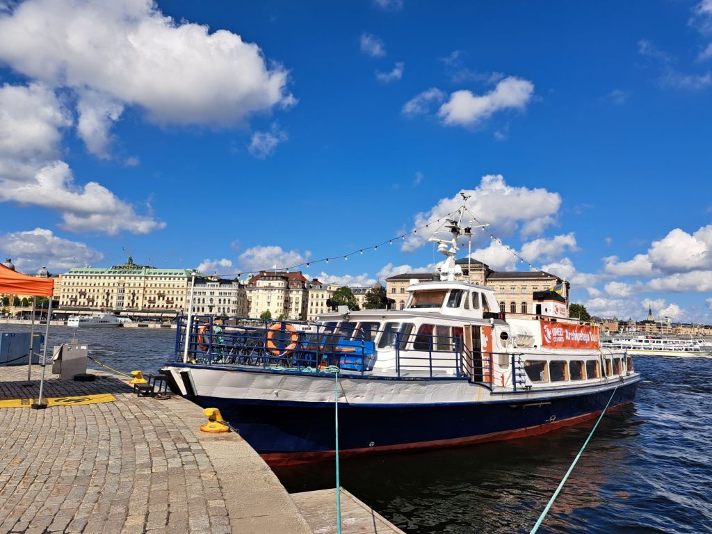 Als hätten wir nie etwas anderes gemacht fahren wir heute Tunelbanan Richtung Altstadt (gestern haben wir ja ausgiebig geübt) und buchen uns als Erstes ein Ausflugsschiff Richtung Schären. Die Tour startet am Nachmittag und so haben wir genügend Zeit durch das Schloss und die Gamla Stan (Altstadt) zu bummeln.