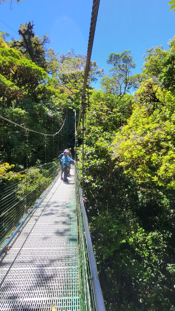 Die Gegend ist mittlerweile eine Touristenhochburg. Es gibt viele Wanderwge aber auch Attraktionen wie Hängebrücke, Zipleine und ähnliches. Wir haben die Tour über die Hängebrücke gemacht. Sehr beeindruckend. Man geht insgesamt über sechs Stahlsteilbrücken und schaut auf das grüne Dach des Waldes. Da es Mittagszeit is, ist der Wald sehr still. Die Tier machen wohl alle ein Schläfchen. Das wirkt auf mich sehr beruhigend. Fast könnte man kleine Feen duch die Blätter fliegen sehn.