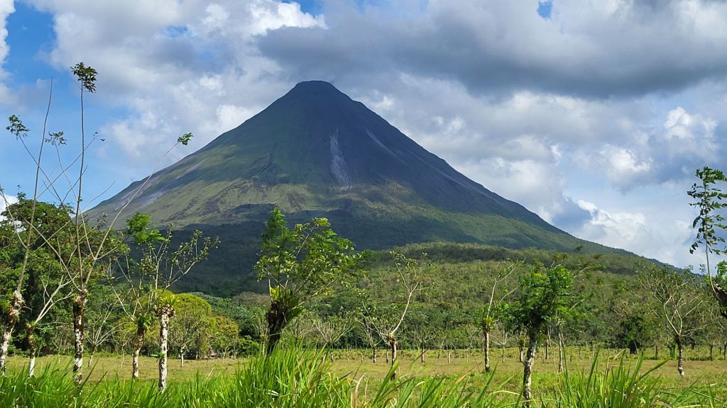 Von weitem sieht man immer wieder den Vulkan Arenal. Es ist der einzige Kegelvulkan auf der Insel. Mit 1643 m Höhe recht imposant. Lange hielt man ihn für erloschen. 1968 meldete sich der Vulkan mit einer gewaltigen Explosion zurück und begrub zwei Orte unter Geröll und Asche. Dabei starben 78 Menschen. Der Nachbarort, welcher verschont blieb, nannte sich darauf hin um in den Namen Fortuna ( Glück)