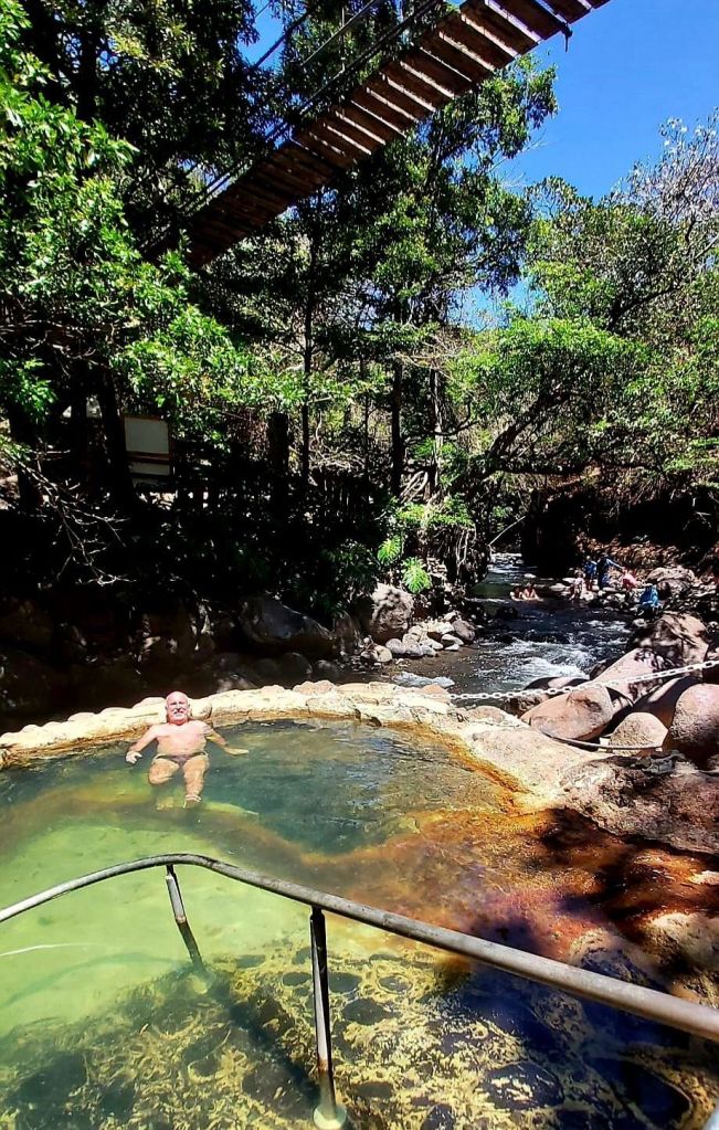 Im Hotel erwartet uns ein toller Blick aus dem Zimmer direkt auf den Vulkan. Es gibt viele heiße Thermalbecken auf dem Gelände. So lassen wir es uns am Nachmittag gut gehen.