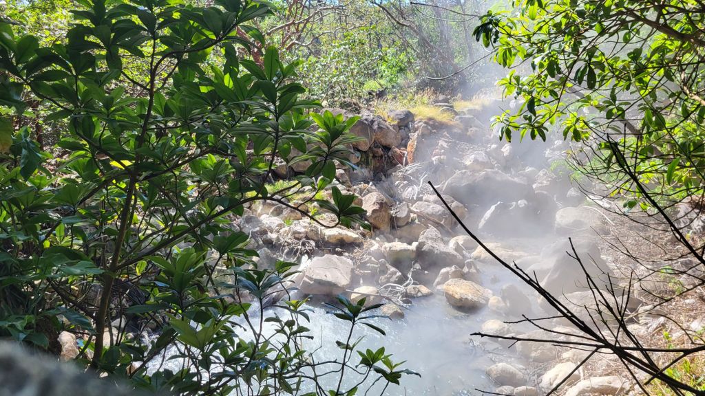 Am nächsten Tag machen wir uns früh auf ( wegen der Hitze) . Wir wandern an einem Flusslauf entlang zu einem Wasserfall. Auch hier wieder vorbei an heißen Quellen. 60 % des Stroms wird durch Wasserdampf aus Erdwärme – Bohrungen bis 4 km Tiefe- erzeugt.