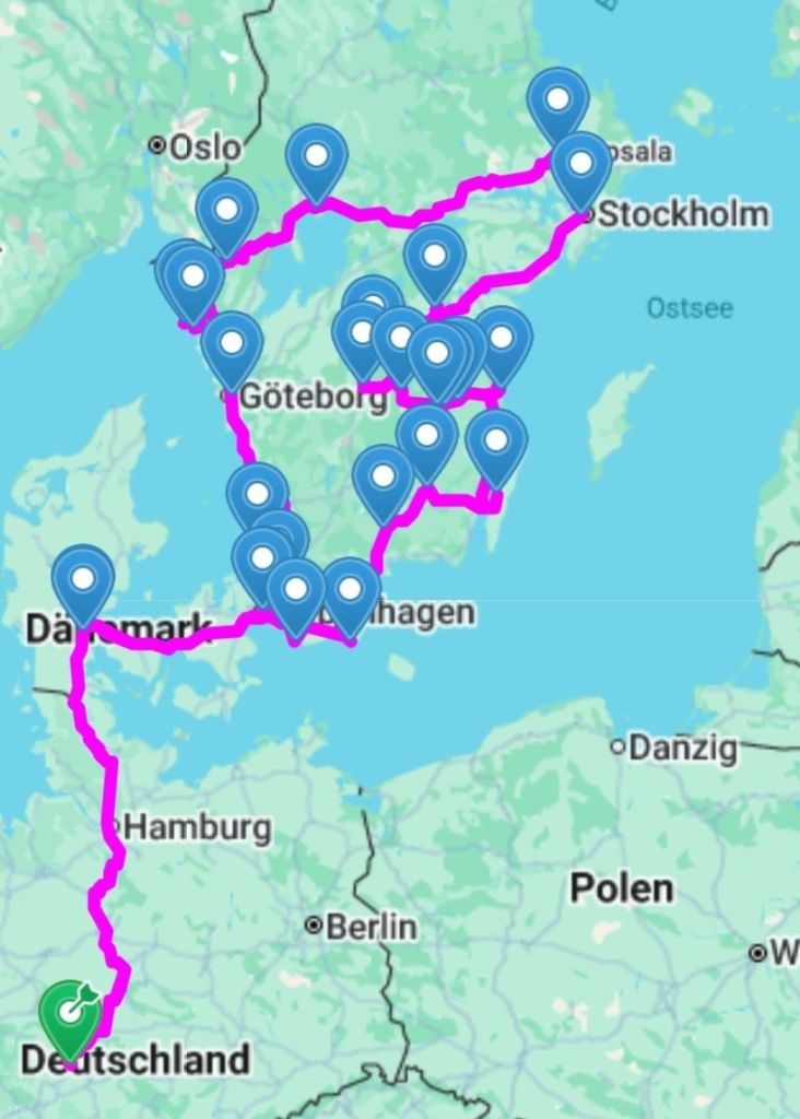 Sonst meist mit dem Flieger unterwegs, geht es diesen Sommer mit unserer Zitrone 🍋 über Dänemark und die Öresundbrücke nach Schweden, einmal im Uhrzeigersinn rundherum.