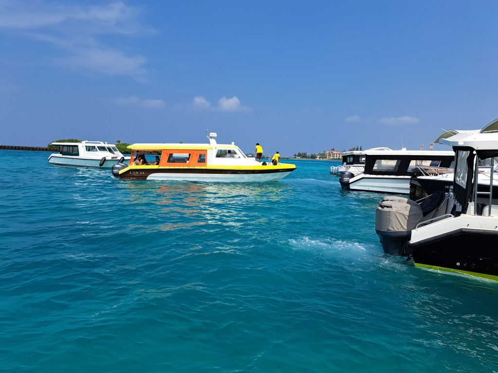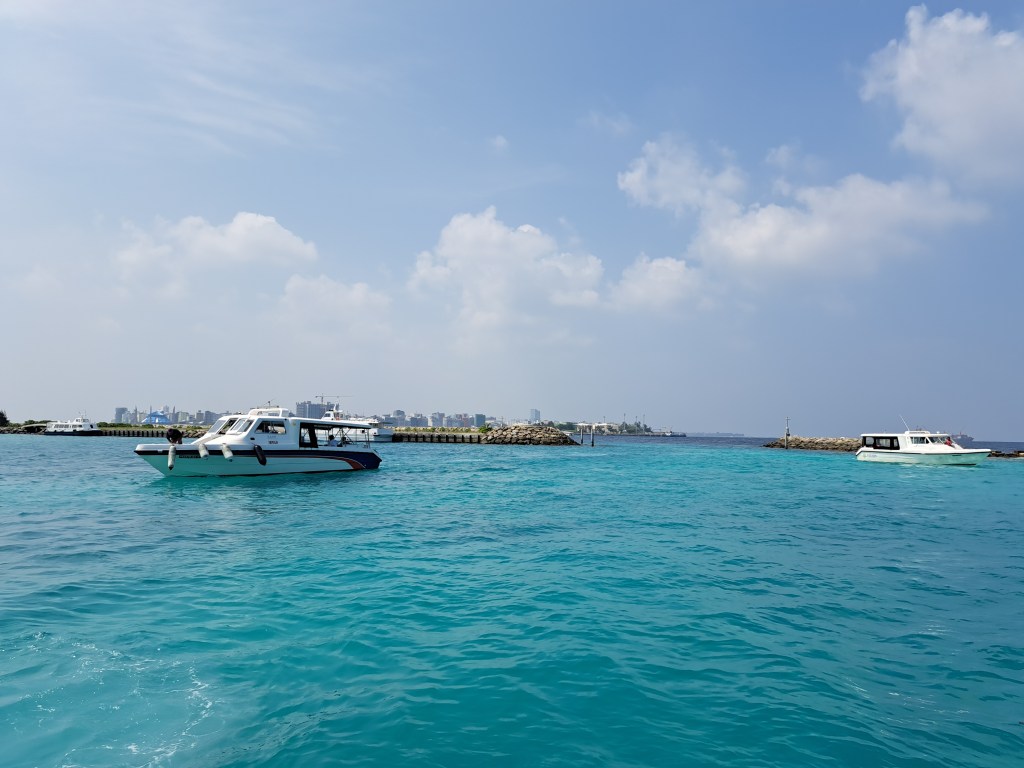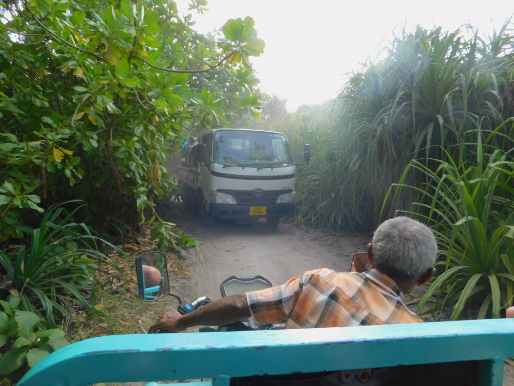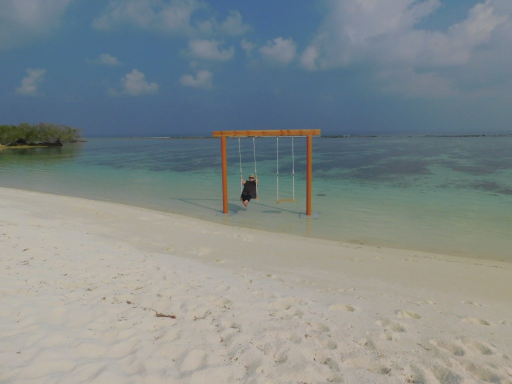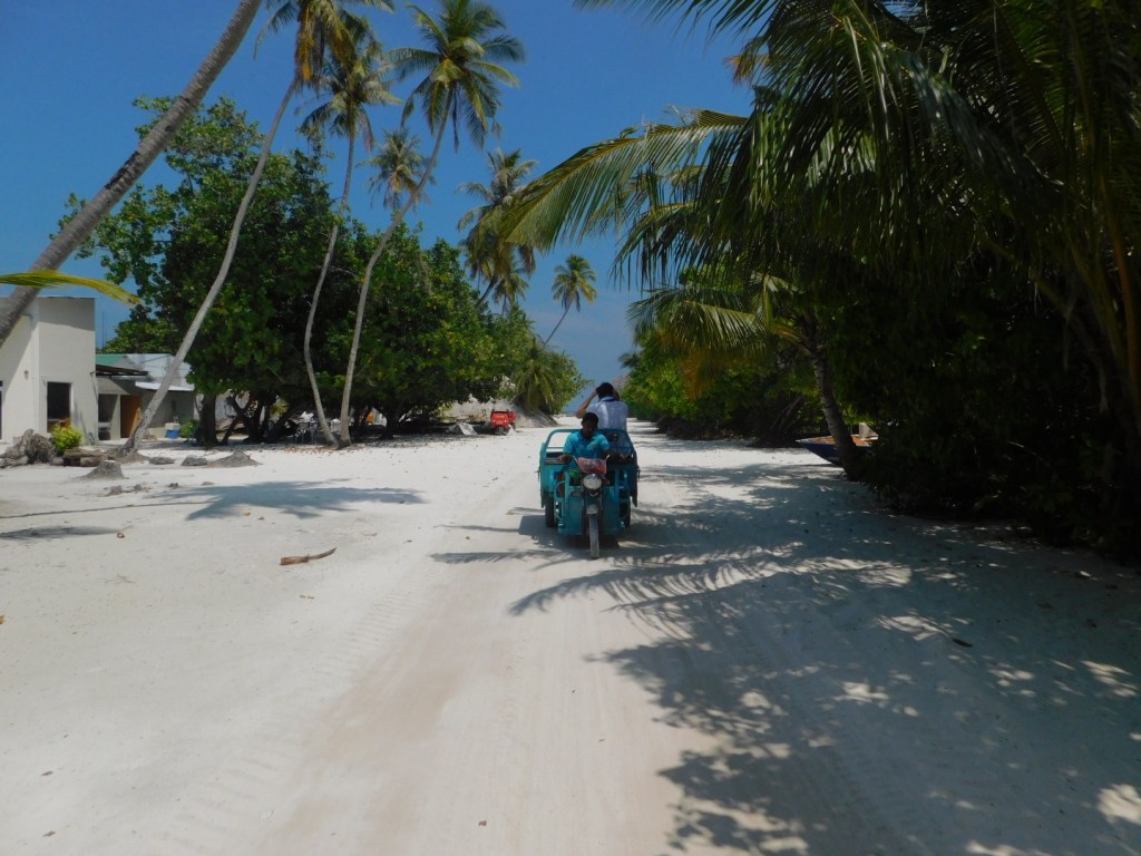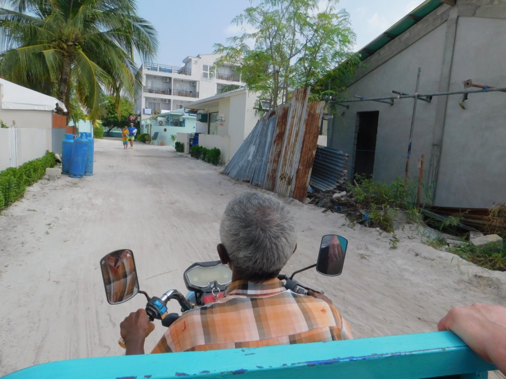 Uns hat trotz aller Einschränkungen das deutlich günstigere Local Island Dhigurah besser gefallen, die Tuk-Tuk- Fahrten einfach legendär. Beim Sovenirkaufen, ja es gibt eine Straße mit ca 5 Tourist- Shops, wartet man auf der Bank vor dem Laden bis jemand der vorbeikommt den Inhaber ruft und der einem den Laden aufschließt. Öffnungszeiten gibt es nicht, Preise auch nicht, alles verhandelbar. Und natürlich die wunderbaren Jungs der Tauchschule, die immer so ein bißchen wie Aqua-Man in klein aussahen mit ihren langen Haaren und den Bärten.